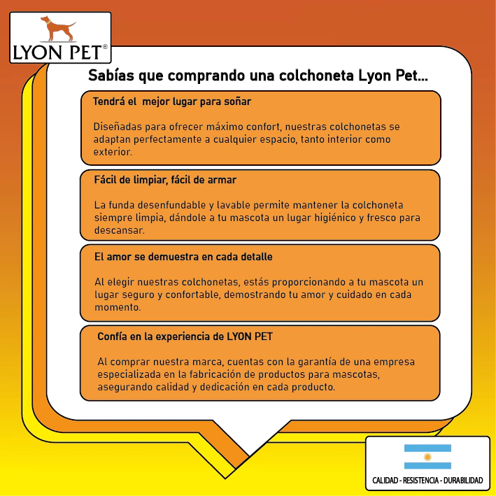 manchas y a la suciedad, la tela es desenfundable para poder lavarla fácilmente en lavarropas, así la cama de tu perro lucirá siempre como el primer día. Con este colchón ofreces el máximo confort a tu mascota para que duerma plácidamente y te evitas un extra de trabajo gracias a su fácil limpieza.