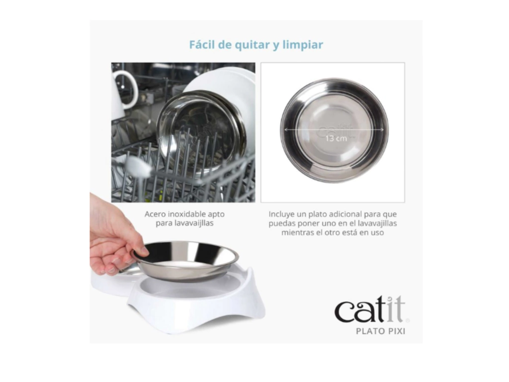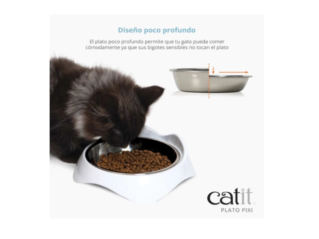 COMEDERO ACERO INOXIDABLE 200ML CATIT Diseño poco profundo, sin estrés para los bigotes Los comederos de acero inoxidable de Catit están especialmente diseñados para gatos, con un diseño poco profundo el cual evitará que en los bigotes de tu gato se genere estrés y de este modo pueda comer de forma cómoda. Medida: 2.8 x 14.2 x 14.7 Capacidad del plato 200 ml Color: BLANCO Y NEGRO Higiénico comedero de acero inoxidable apto para lavavajillas Capacidad del plato 200 ml (6,83 fl oz) Soporte duradero con patas antideslizantes. Fácil de limpiar. El Comedero Individual es fácil de limpiar gracias a su plato extraíble de acero inoxidable. Diseño sin estrés para los bigotes El comedero tiene un diseño poco profundo para que tu gato pueda comer cómodamente, sin generar estrés a sus bigotes.
